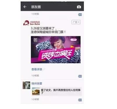 “瓷磚也瘋狂”蘇北聯動期間,圣德保聯合淮安經銷商推出微信朋友圈廣告,廣告設計上以音樂為主線,借勢安又琪影響力,引發安又琪粉絲熱烈討論,配上主題性強的廣告語,凸顯出圣德保音樂營銷的品牌格調,令用戶留下了深刻的印象。